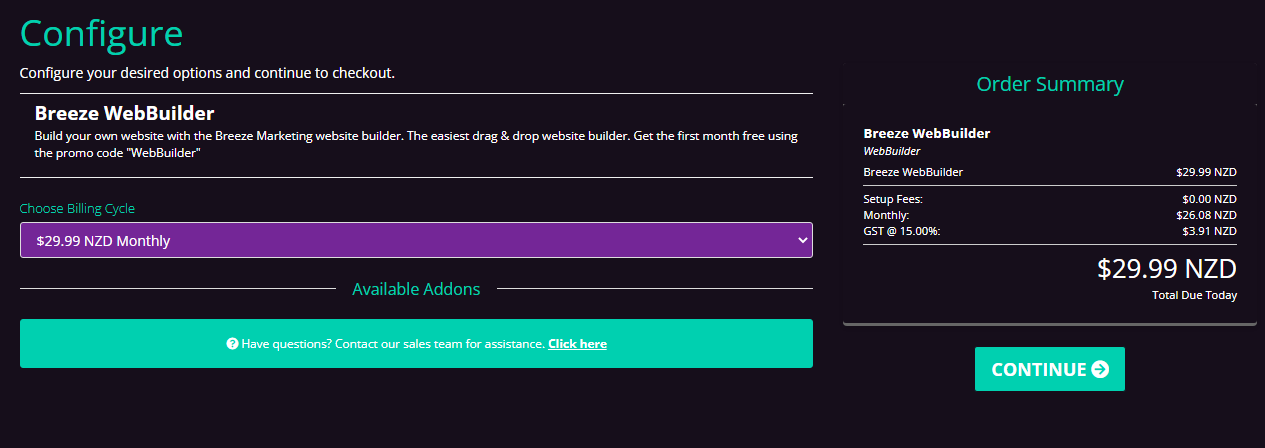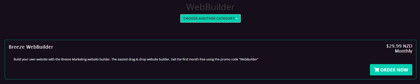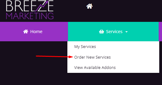 - Then click this link Store > WebBuilder or when logged in, in the menu hover over Services, Click Order New Services, and find the Breeze WebBuilder Service.
