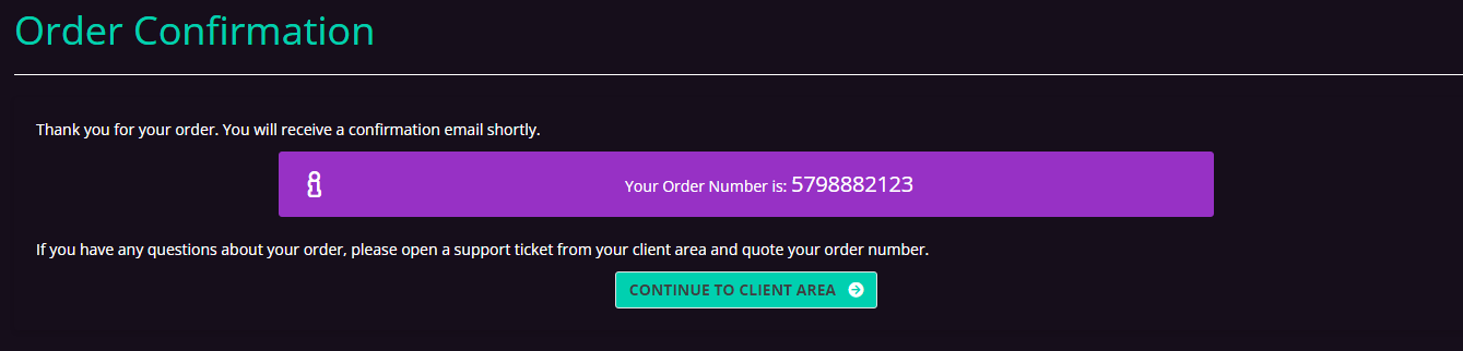 - You will then see your Order Confirmation, don't worry we will also email you the details.