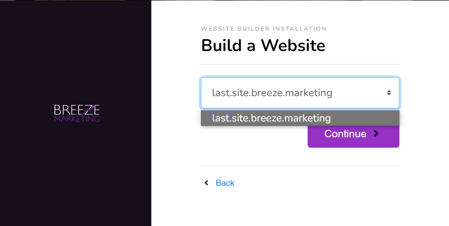 - You will then choose where to build your site, if you only have the one product you will only see one option.